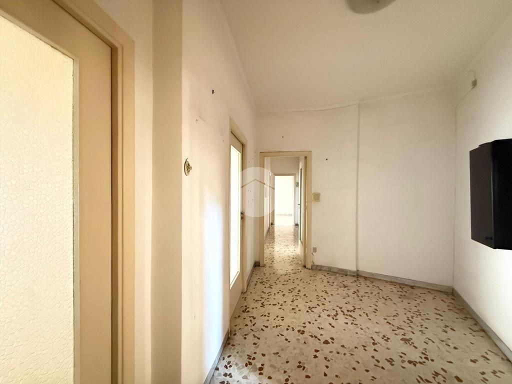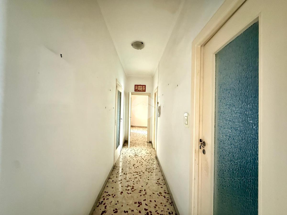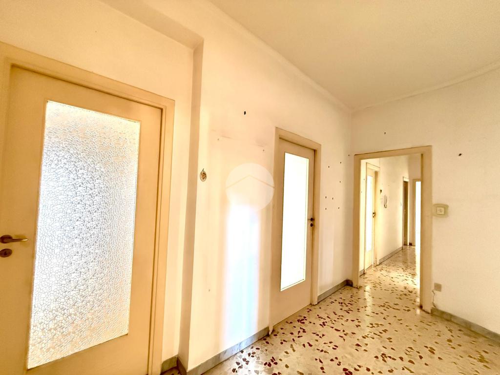 L’appartamento presenta una metratura di circa 105 mq ed è composto da ingresso in ampio disimpegno, dove si trovano le prime due spaziose camere, entrambe con accesso diretto alla balconata; proseguendo troviamo un corridoio che conduce a una terza ampia camera, cucina abitabile e bagno con vasca. Inoltre dispone di un comodo ripostiglio.